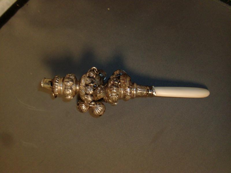 Victorian silver baby rattle & whistle with ivory handle - 19th c.