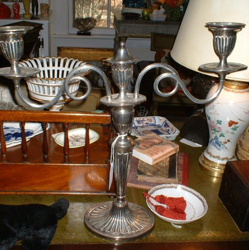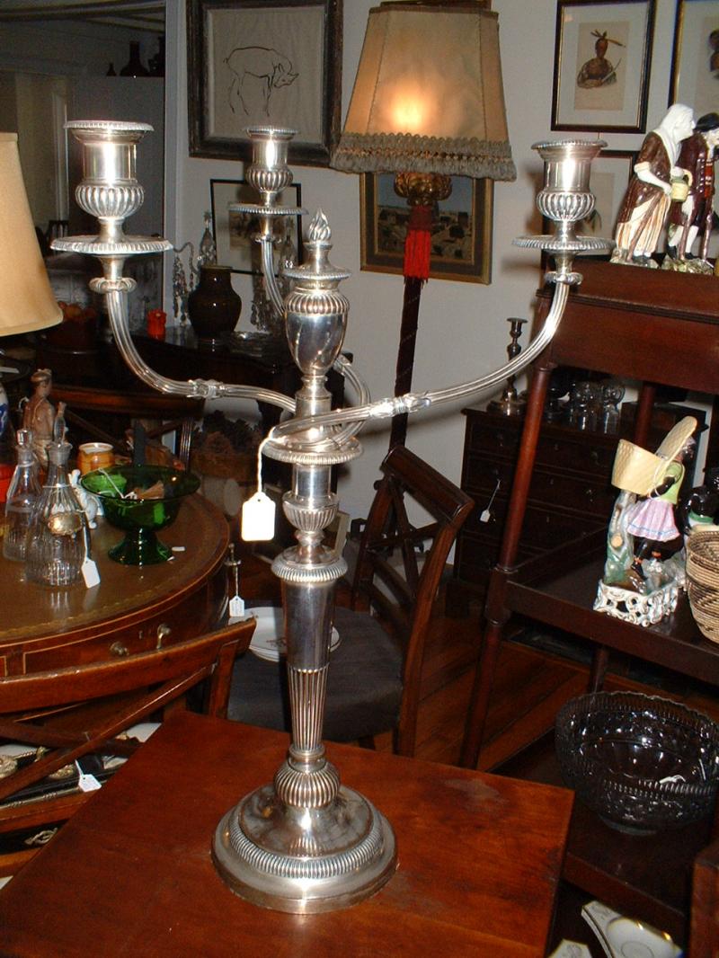 Magnificent Matthew Boulton Candelabra. Three branches with central fourth socle covered with flame finial when not in use. Great size and quality. English c. 1815. | |