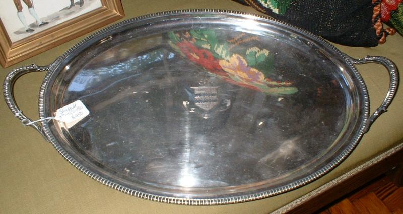 Selection of Old Sheffield Handled Trays c. 1810. Bottom tray with engraved crest and motto - Fortis Fortuna Juvat - Fortune Favors the Bold.