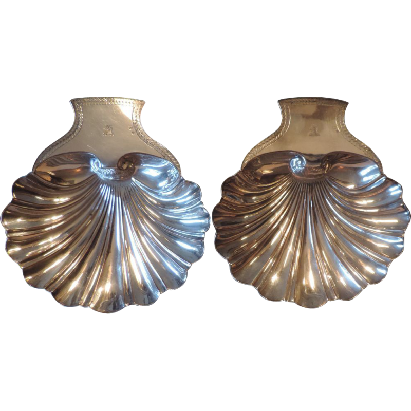 Large pair 18th c. old Sheffield silver on copper shell form dishes.