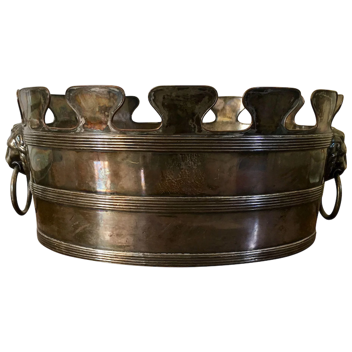 18th century Old Sheffield silveer on copper wine or ice bucket engraved with crest and motto for The Order of the Garter.