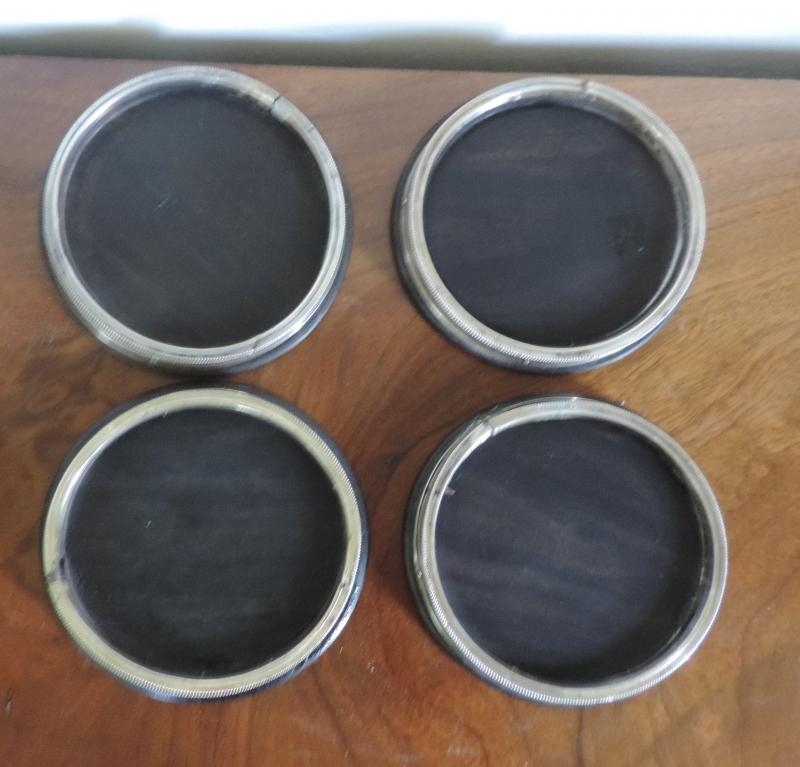 Set 4 19th c. Dutch silver and ebony wine coasters.