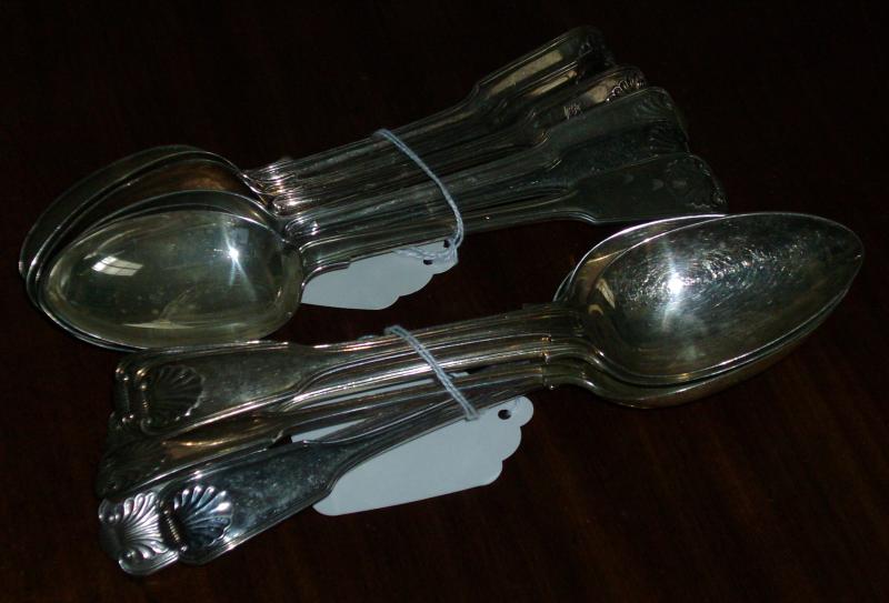 Twelve Georgian Dessert Spoons in shell and thread pattern; fully marked, heavy weight and large size.