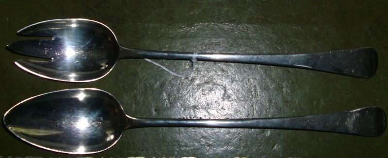 Set of George III Stuffing or Serving Spoons - one with three tines.Measurement: 12.5" long.