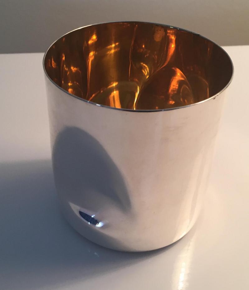 Elsa Peretti thumbprint silver water cup beaker vase with vermeil interior for Tiffany 925 Sterling Italy 1984.