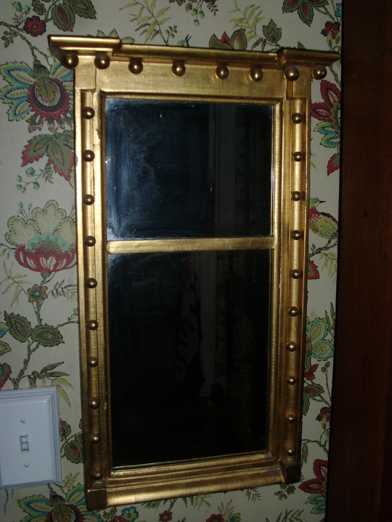 Diminutive American Federal pier mirror - c. 1820 - surrounded by gilt spheres - measures 23" tall.