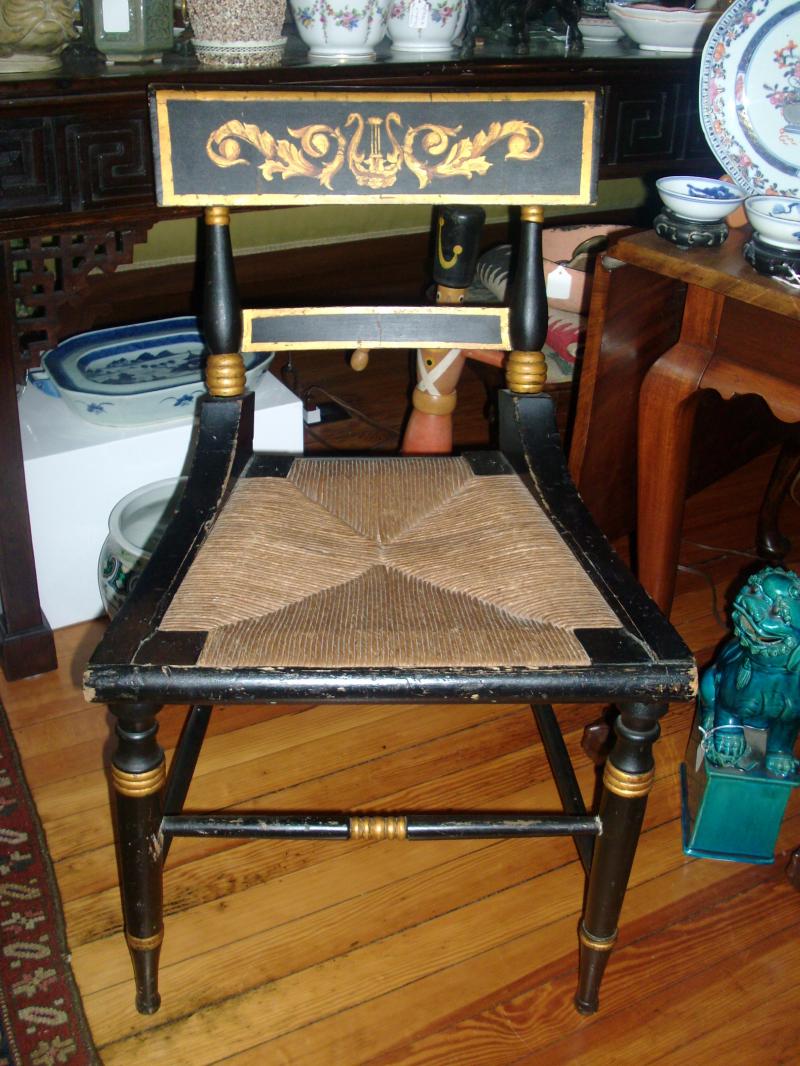 Federal / Classical paint decorated chair with lyre motif - c. 1820.