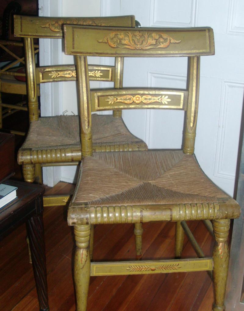 Good pair American Classical paint decorated fancy chairs - early 19th c.