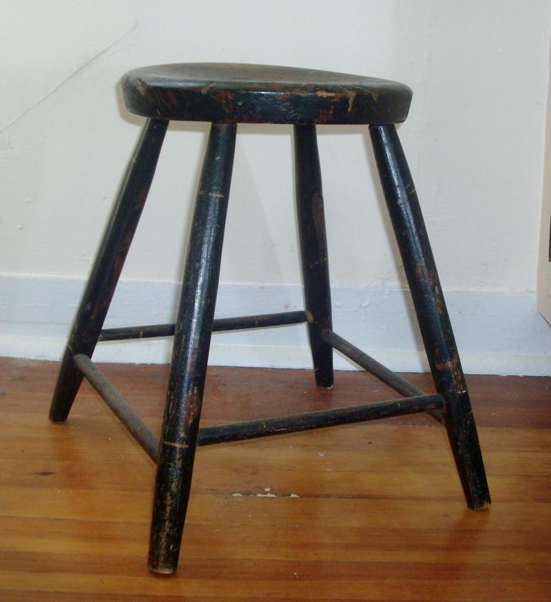 Early 19th c. American Federal bamboo turned Windsor stool with original surface.