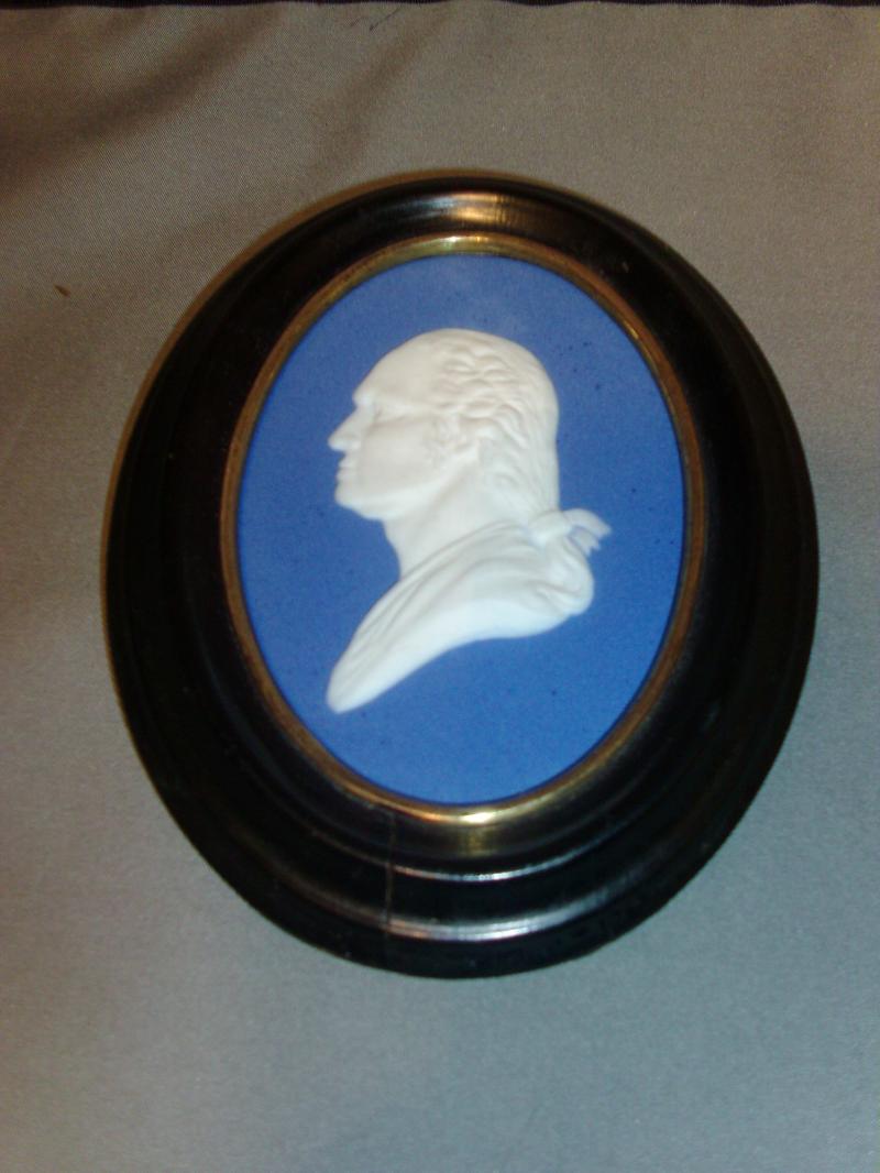 19th c. Wedgwood jasperware portrait plaque of George Washington in an ebonized frame.