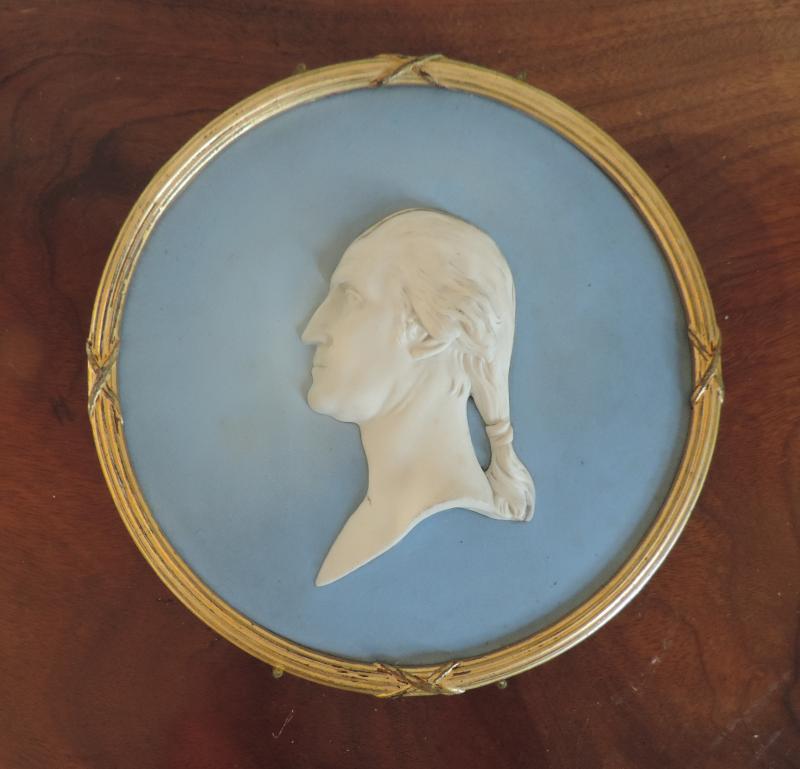 Wedgwood jasperware portrait bust wall plaque of George Washington in deep relief - 19th c. - 8 1/2" in diameter.