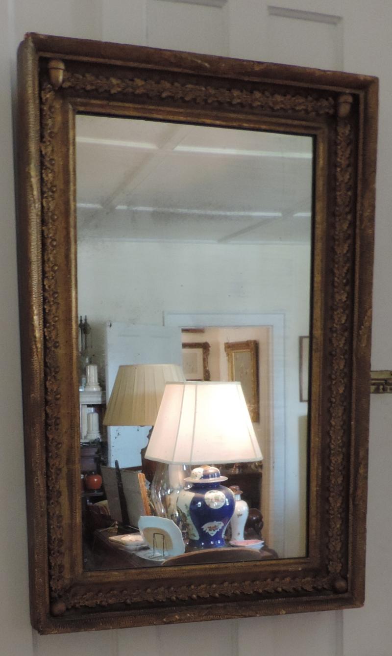 American Federal classical gilt pier mirror with acorn finials and continuous oak leaf garland. Ball stops at the base. Original surface. Measures 32" x 21 1/4".