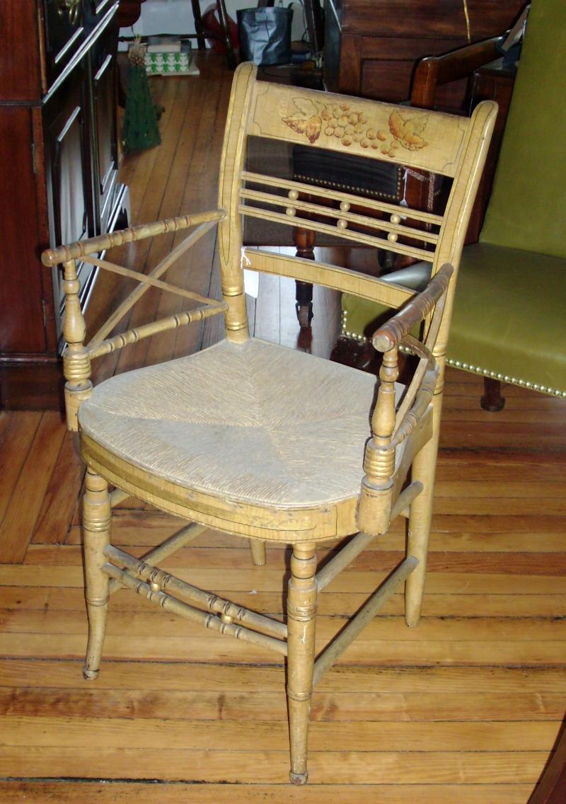 Fine Federal Paint Decorated Armchair with design of grape clusters and rush seat - c. 1810.