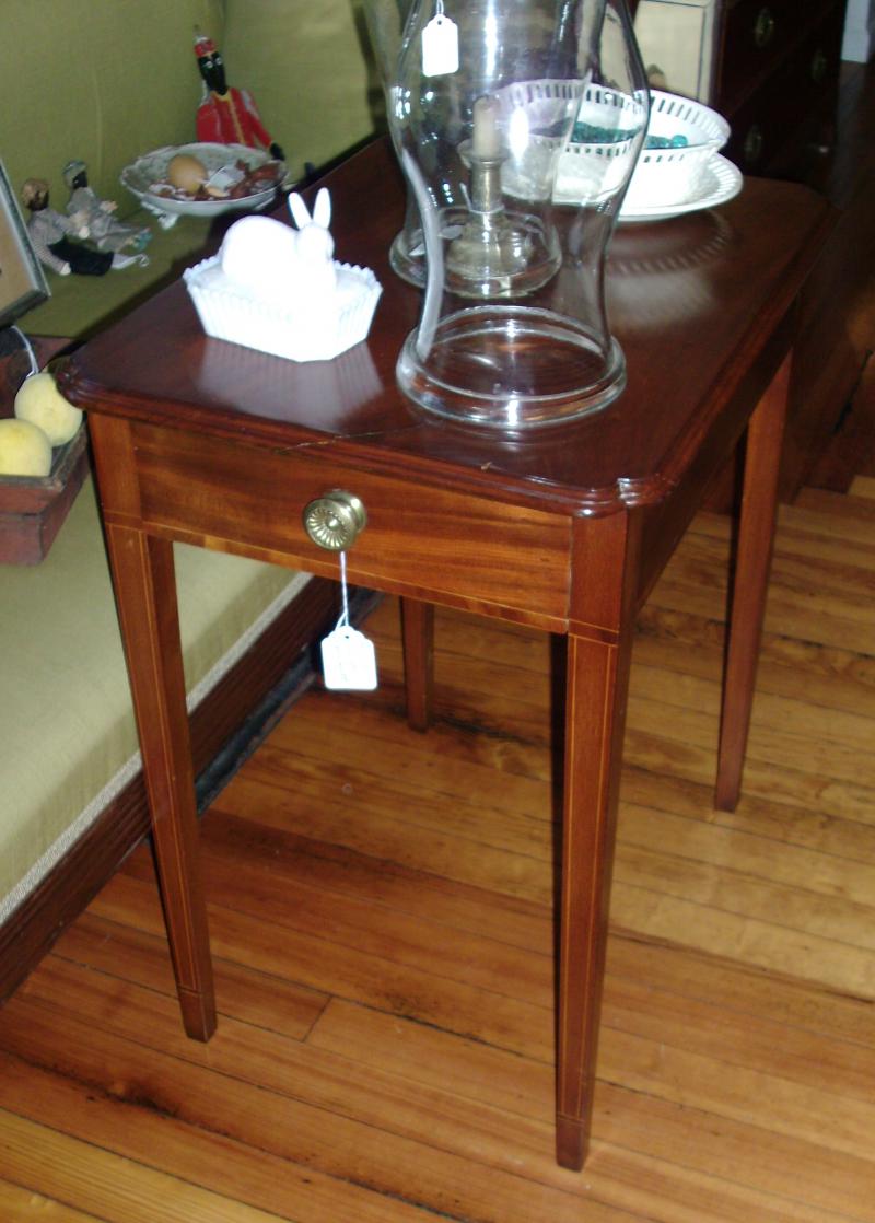 Fine Federal Shaving Stand with three drawers, line inlay, cross banding and inset escutcheons. c. 1800.