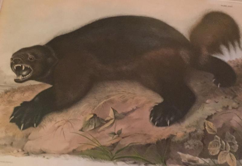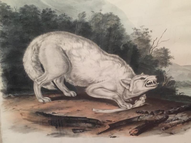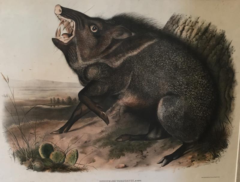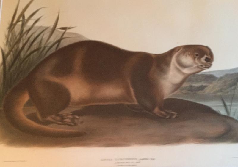 Selection John James Audubon large folio hand colored lithographs from "The Viviparous Quadrupeds of North America." Images include Canada Otter, Wolverine, Collared Peccary and White American Wolf. Printed & Colored by J. T. Bowen, Philadelphia 1840 - 1845. Handsomely framed alike.
