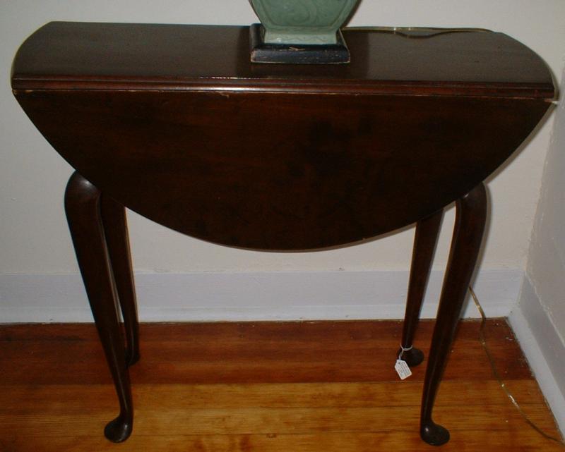 Diminutive Massachusetts Drop Leaf Table with compressed pad feat - c. 1780. Provenance: with Jess Pavey. Measurements: 26.5" tall x 28" diameter of top