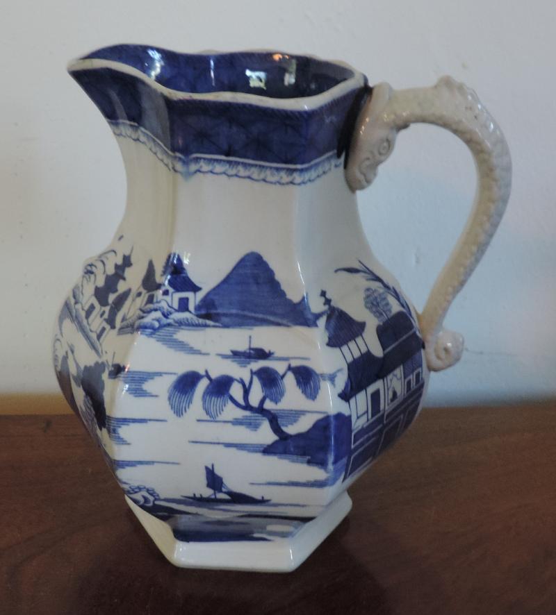 Early 19th c. Mason's Ironstone China - pitcher and soup bowls in blue and white Chinese Canton pattern.