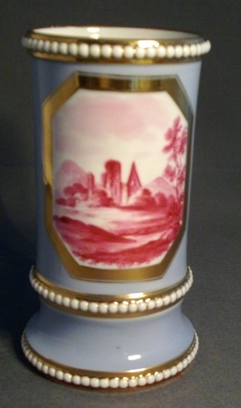 Early 19th c. Worcester porcelain topographical vase decorated with a named view of Malvern Gate, Worcestershire. Prince of Wales feather handles.